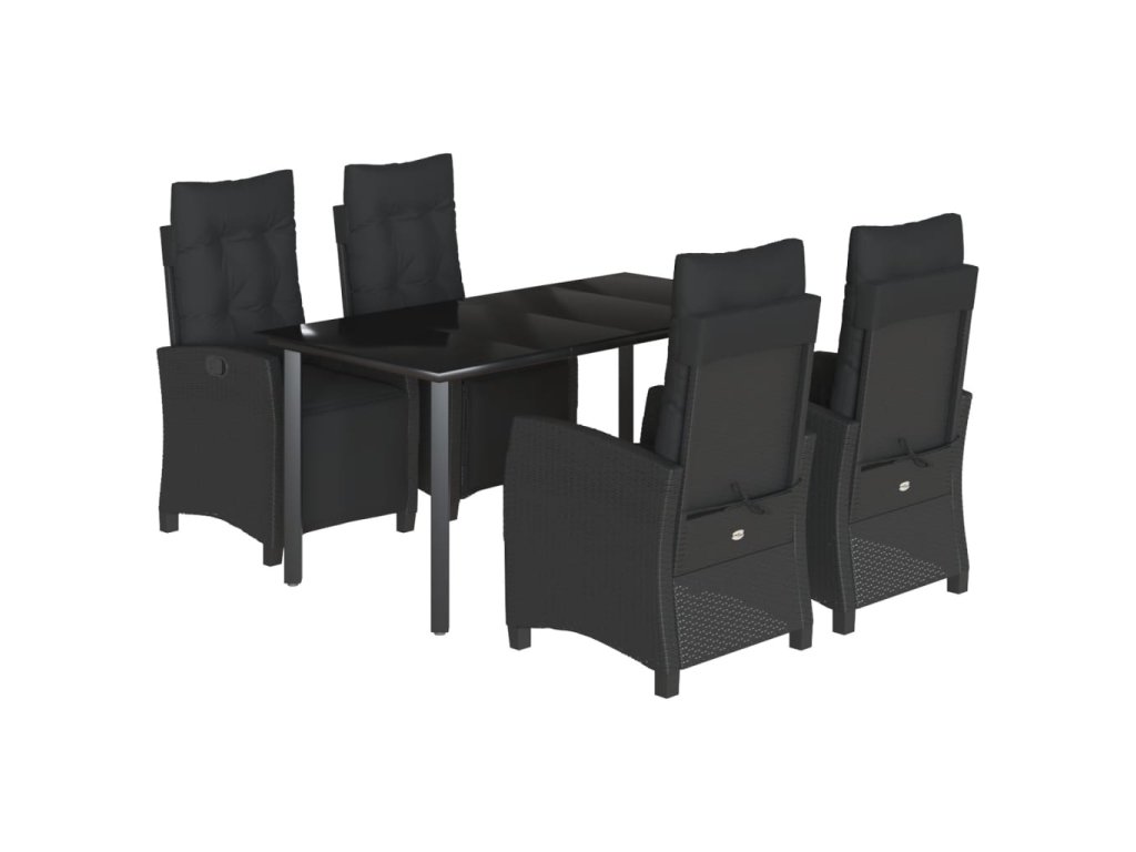 5dílný zahradní jídelní set s poduškami černý polyratan 3212970