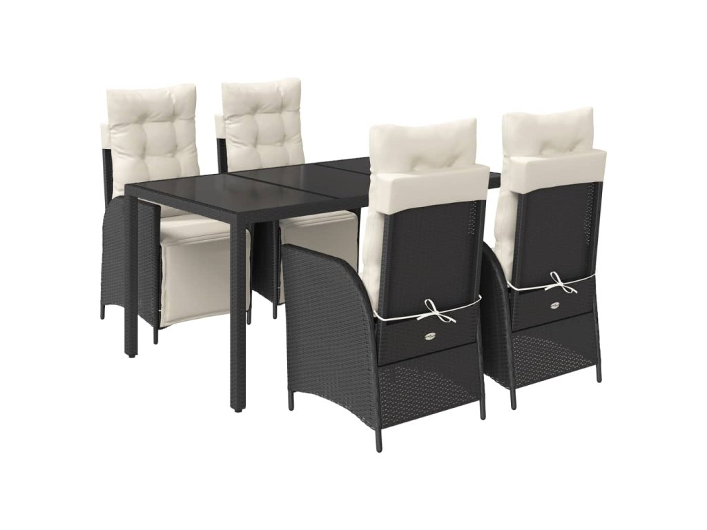 5dílný zahradní jídelní set s poduškami černý polyratan 3213316