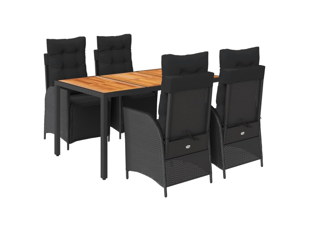 5dílný zahradní jídelní set s poduškami černý polyratan 3213340
