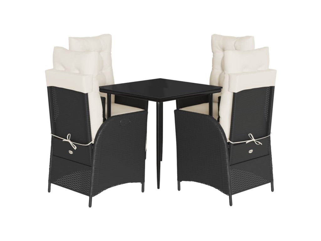 5dílný zahradní jídelní set s poduškami černý polyratan 3213379