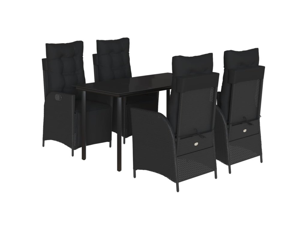 5dílný zahradní jídelní set s poduškami černý polyratan 3213401