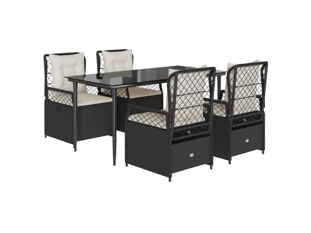 5dílný zahradní jídelní set s poduškami černý polyratan 3262960