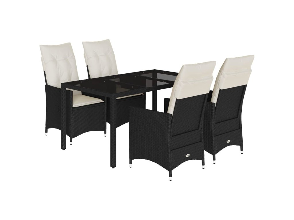 5dílný zahradní jídelní set s poduškami černý polyratan 3276694