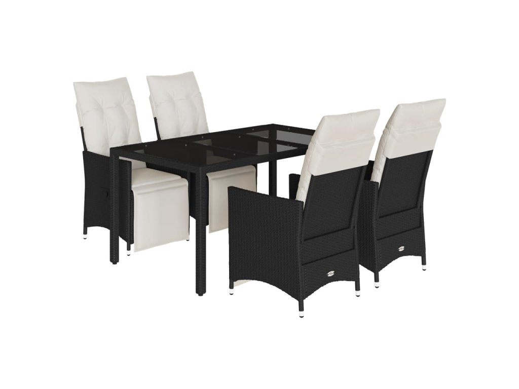 5dílný zahradní jídelní set s poduškami černý polyratan 3276865