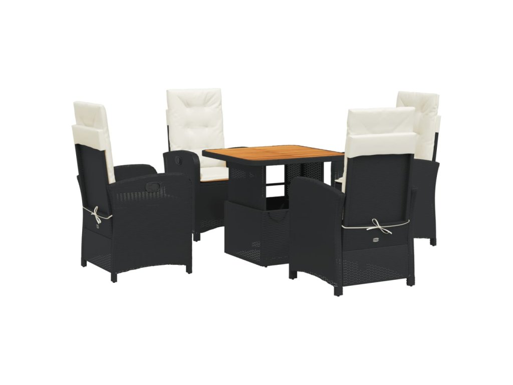5dílný zahradní jídelní set s poduškami černý polyratan 3277314