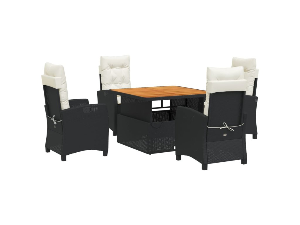 5dílný zahradní jídelní set s poduškami černý polyratan 3277376