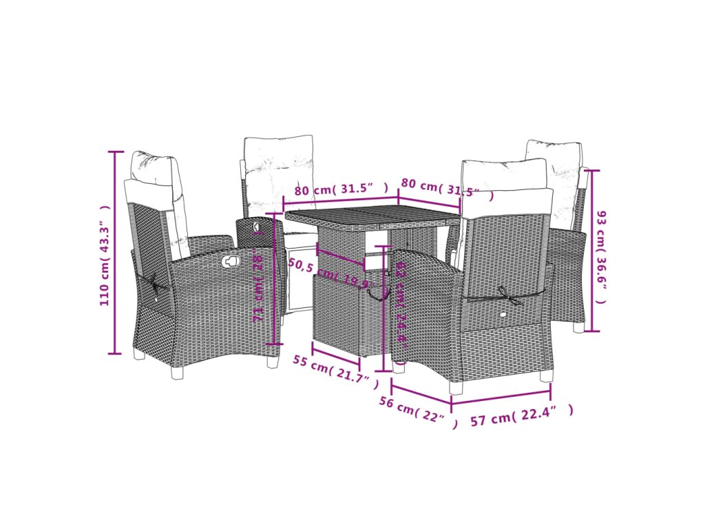 - Rozměry při poloze vsedě: 57 x 66 x 93 cm (Š x H x V)