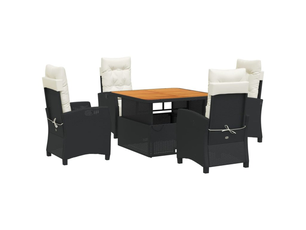 5dílný zahradní jídelní set s poduškami černý polyratan 3277378