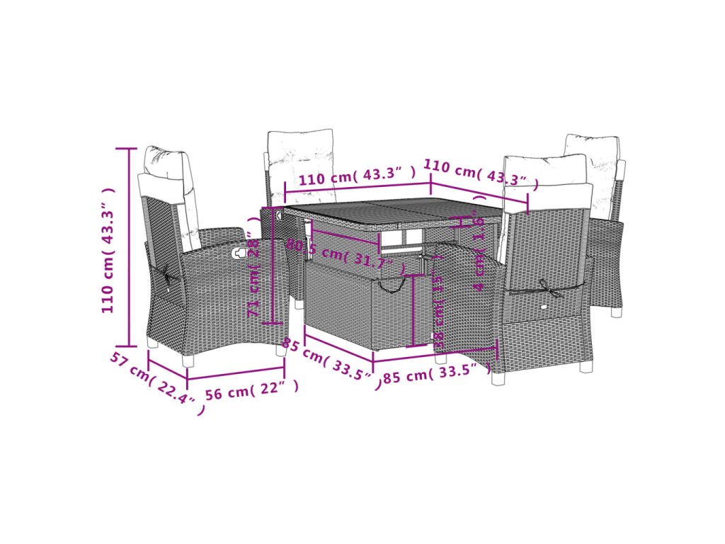 - Rozměry stolku: 110 x 110 x 40/71 cm (D x Š x V)