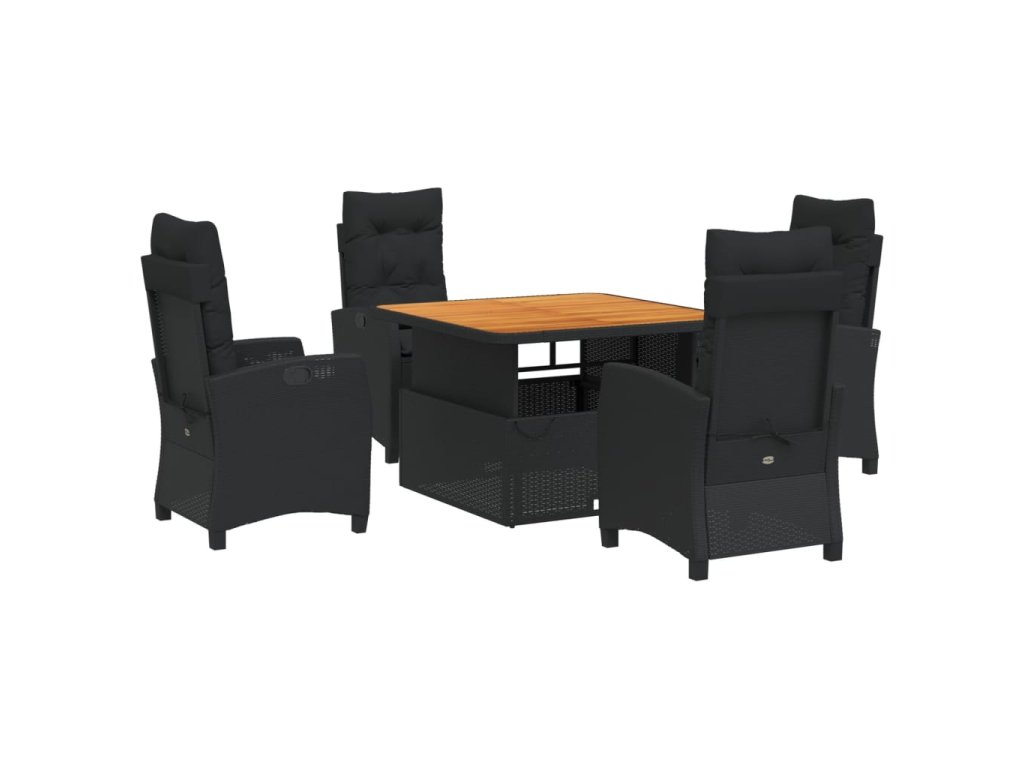 5dílný zahradní jídelní set s poduškami černý polyratan 3277389