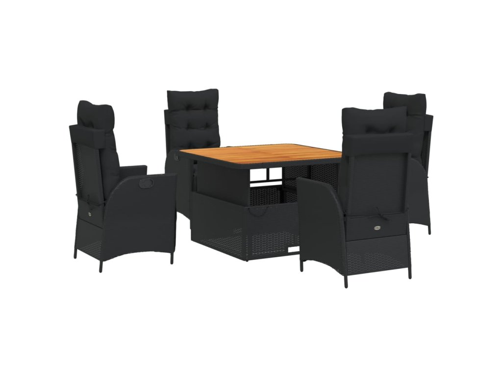 5dílný zahradní jídelní set s poduškami černý polyratan 3277450