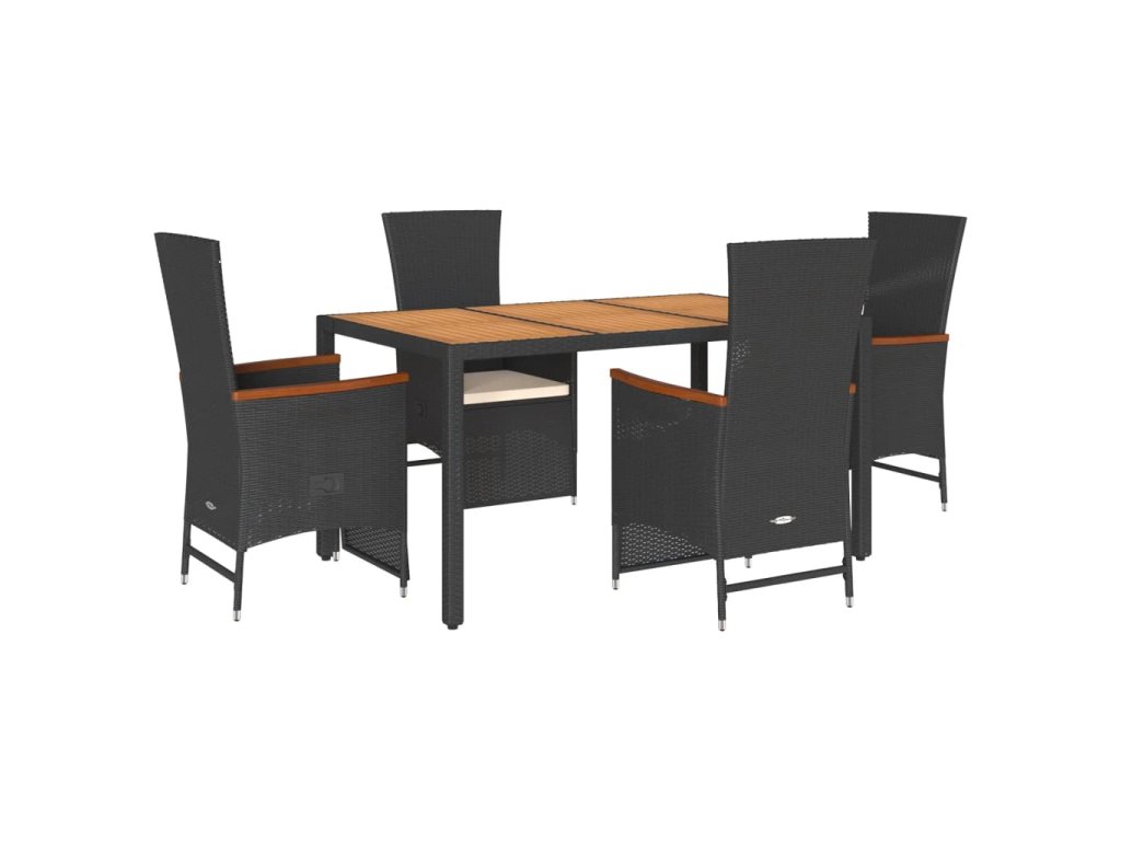5dílný zahradní jídelní set s poduškami černý polyratan 3277510