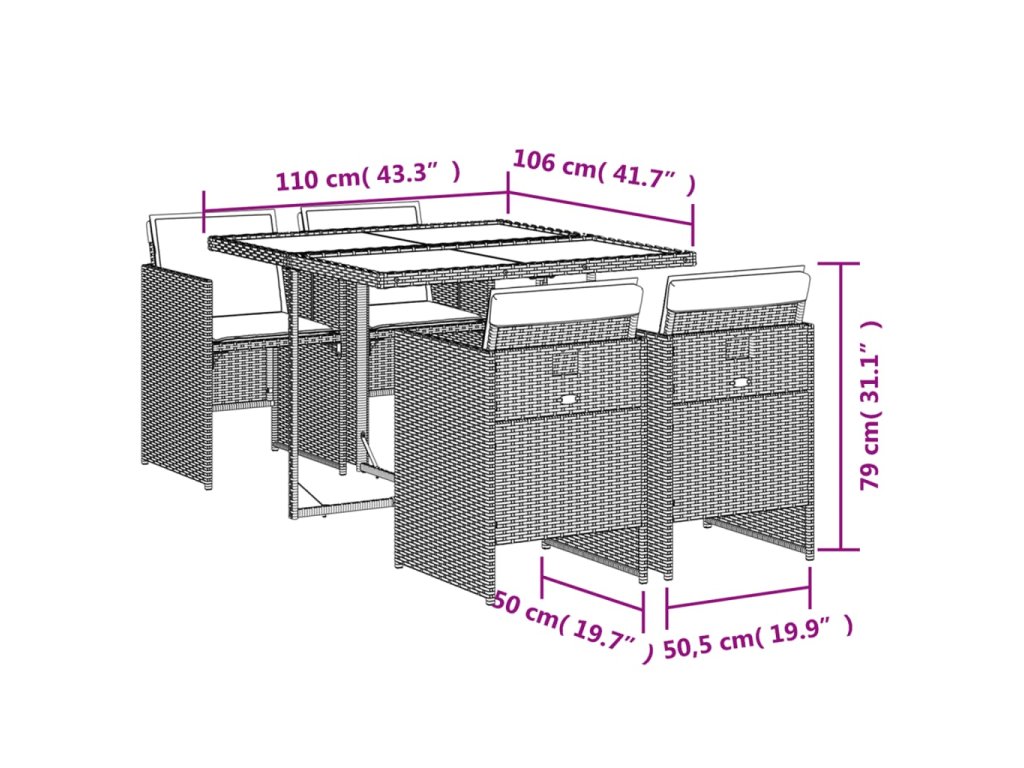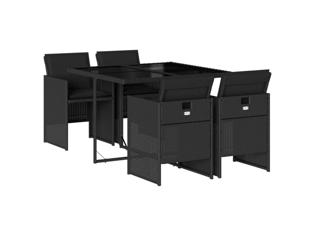 5dílný zahradní jídelní set s poduškami černý polyratan 3277662