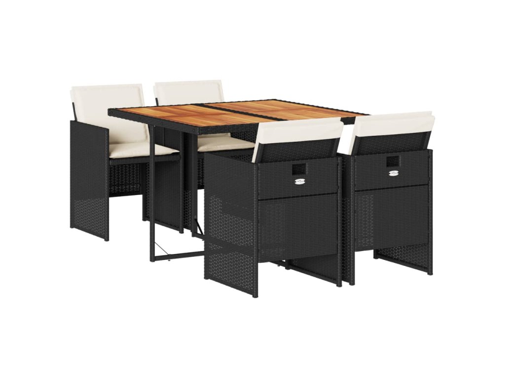 5dílný zahradní jídelní set s poduškami černý polyratan 3277670