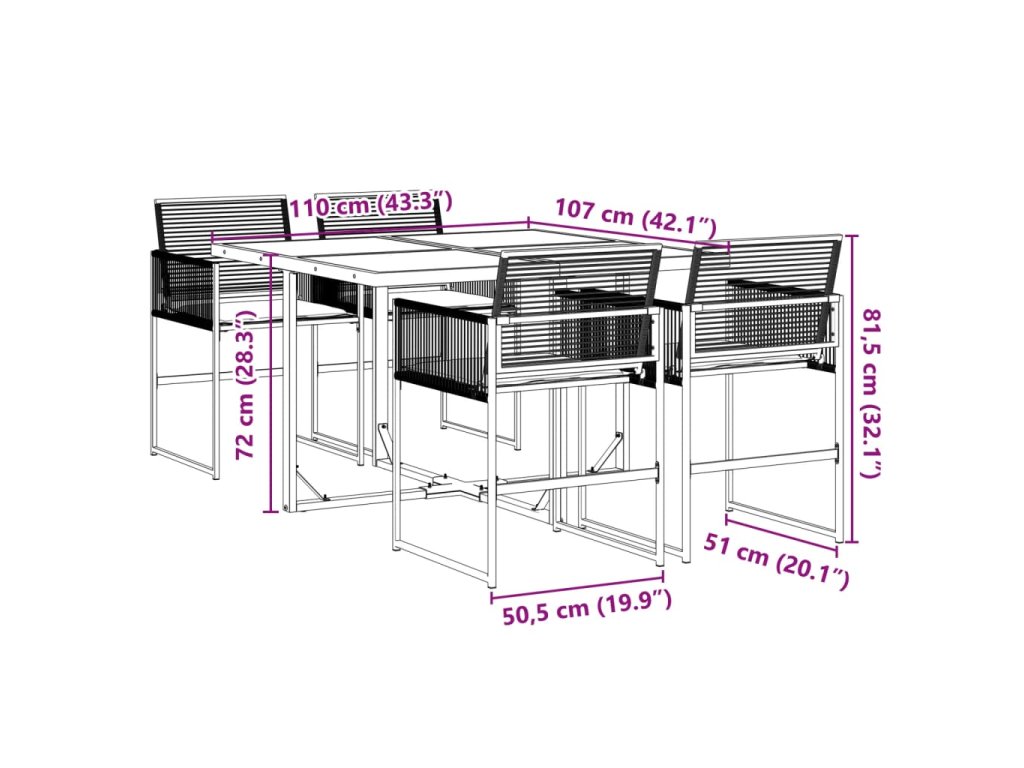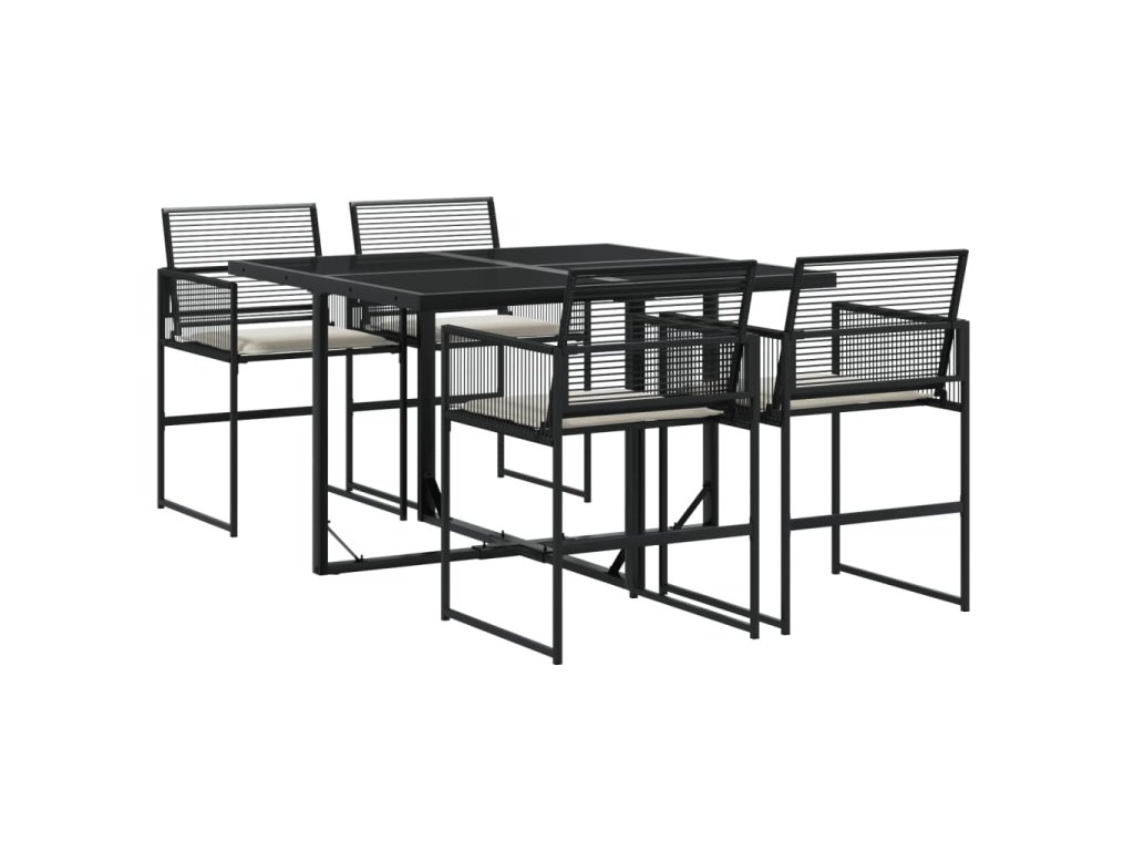 5dílný zahradní jídelní set s poduškami černý polyratan 3295023