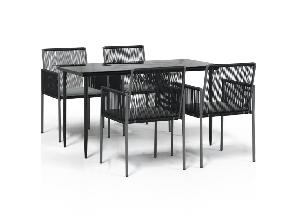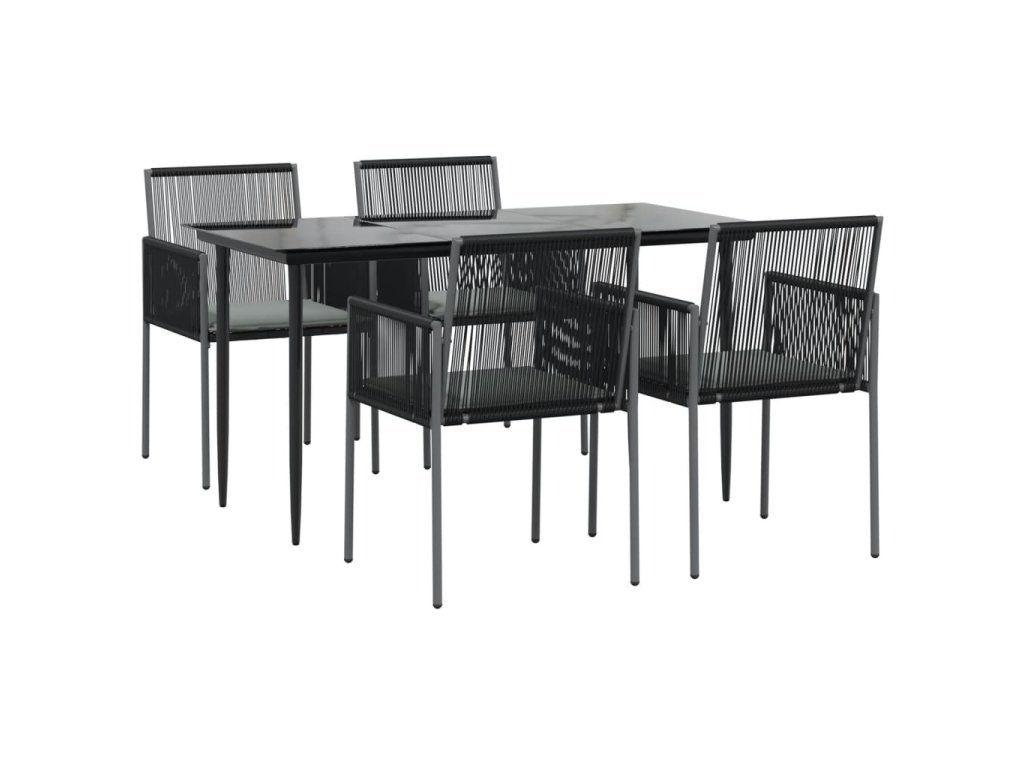 5dílný zahradní jídelní set s poduškami černý polyratan a ocel 3187067