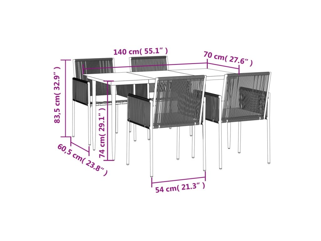 - Robustní a stabilní rám: Jelikož má ocelové rámy, je tento jídelní set robustní a stabilní pro každodenní venkovní použití.