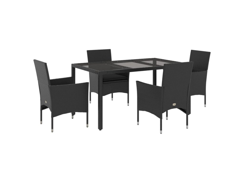 5dílný zahradní jídelní set s poduškami černý polyratan a sklo 3278545
