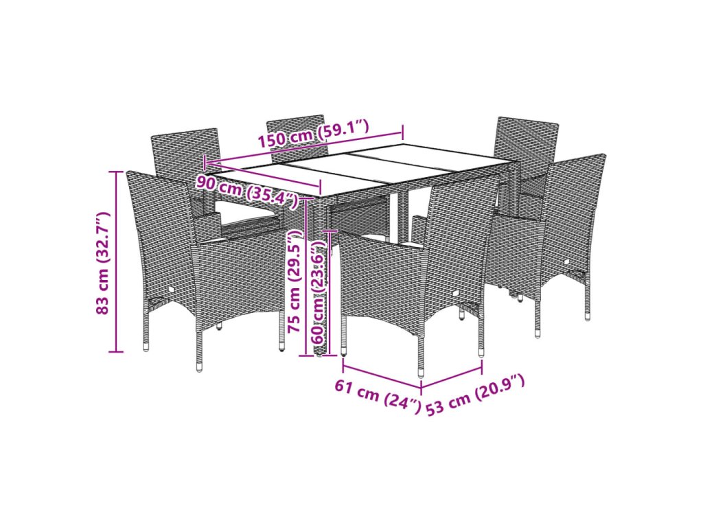 - Materiál: PE ratan, práškově lakovaná ocel, tvrzené sklo
