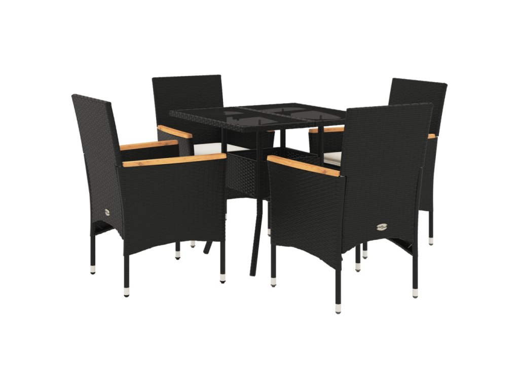 5dílný zahradní jídelní set s poduškami černý polyratan a sklo 3278704