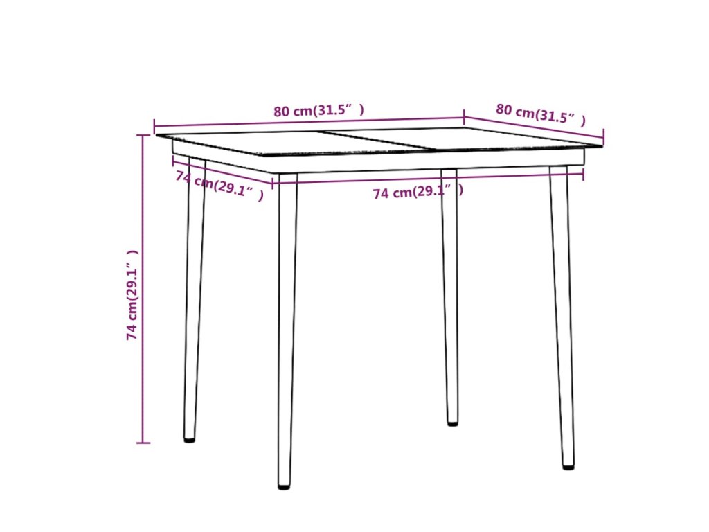 - Rozměry stolu: 80 x 80 x 74 cm (D x Š x V)