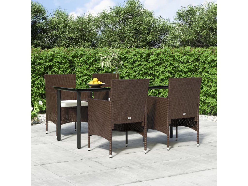 5dílný zahradní jídelní set s poduškami hnědý a černý 3156612