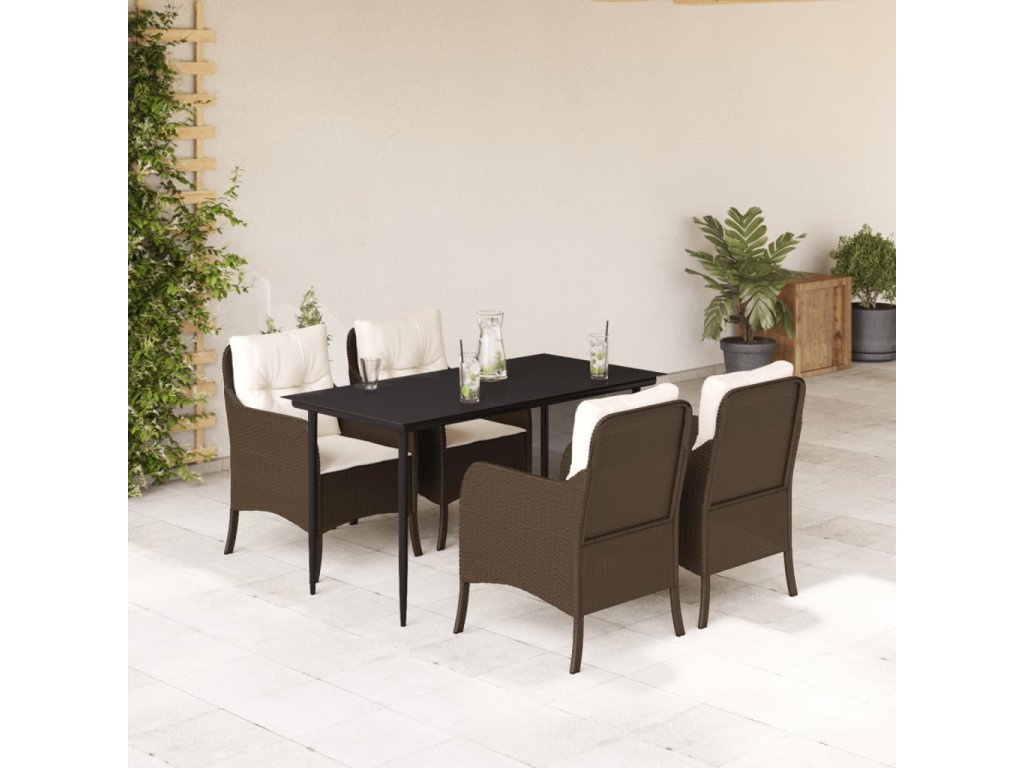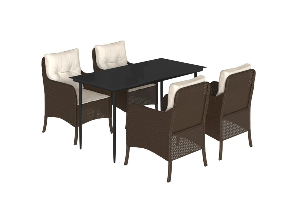 5dílný zahradní jídelní set s poduškami hnědý polyratan 3211936