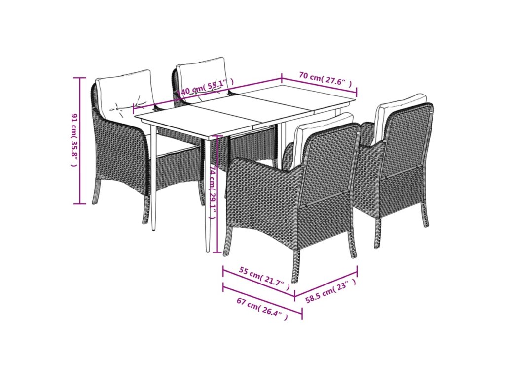 - Robustní a stabilní rám: Ocelový rám s práškovým nástřikem zajišťuje, že zahradní nábytek je pevný a stabilní pro každodenní venkovní použití.