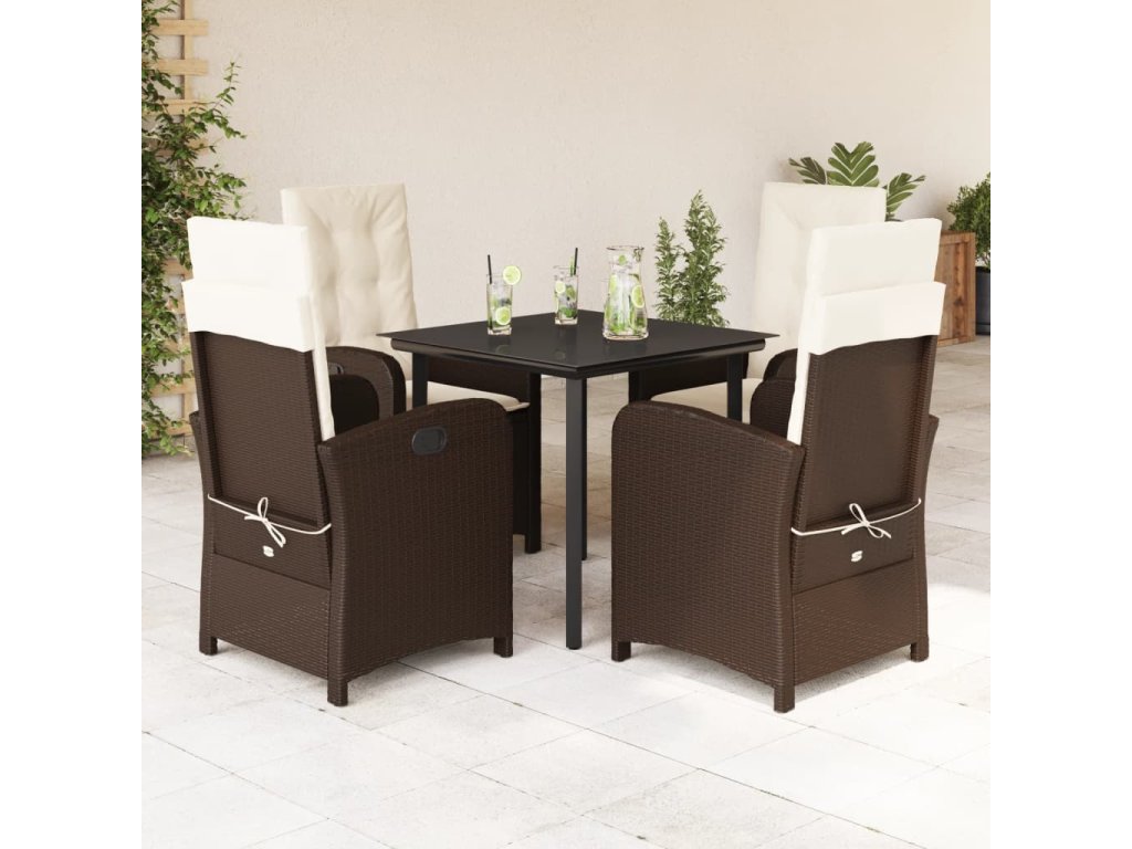 5dílný zahradní jídelní set s poduškami hnědý polyratan 3212341