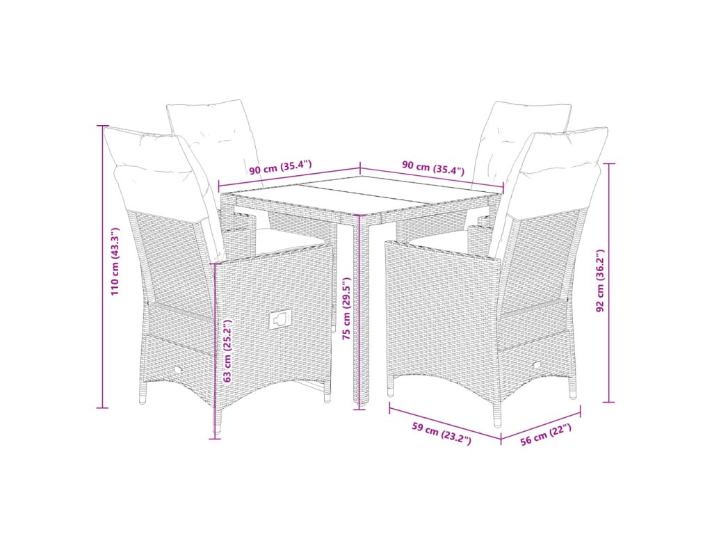 5dílný zahradní jídelní set s poduškami hnědý polyratan 3276769