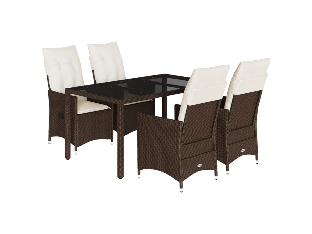 5dílný zahradní jídelní set s poduškami hnědý polyratan 3276770