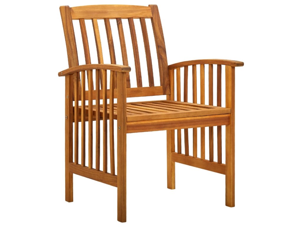 Jídelní stůl je vyrobený z masivního akáciového dřeva, tvrdého dřeva s hustou strukturou, takže je robustní, odolný a snadno se udržuje. Na dřevěnou stolní desku můžete prostřít k jídlu, servírovat nápoje a odkládat si celou řadu věcí. Dřevěné rámy židlí jsou ošetřené olejem a na vaši terasu nebo dvorek vnesou klasický vzhled a vaše venkovní bydlení oživí svým přírodním šarmem. Hustě polstrované podušky vám poskytnou dodatečné pohodlí při sezení a relaxaci. Tuto sestavu zahradního nábytku můžete snadno očistit vlhkým hadříkem.