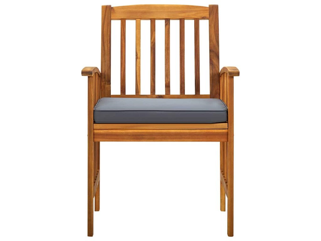 Jídelní stůl je vyrobený z masivního akáciového dřeva, tvrdého dřeva s hustou strukturou, takže je robustní, odolný a snadno se udržuje. Na dřevěnou stolní desku můžete prostřít k jídlu, servírovat nápoje a odkládat si celou řadu věcí. Dřevěné rámy židlí jsou ošetřené olejem a na vaši terasu nebo dvorek vnesou klasický vzhled a vaše venkovní bydlení oživí svým přírodním šarmem. Hustě polstrované podušky vám poskytnou dodatečné pohodlí při sezení a relaxaci. Tuto sestavu zahradního nábytku můžete snadno očistit vlhkým hadříkem.