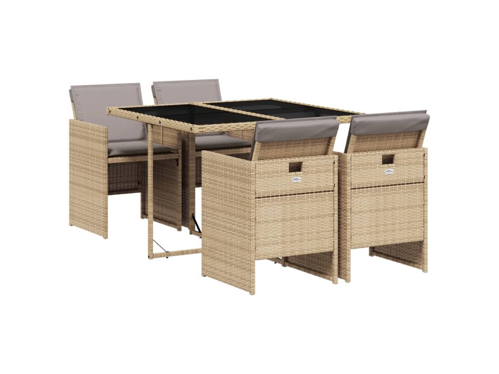 5dílný zahradní jídelní set s poduškami mix béžové polyratan 3210540