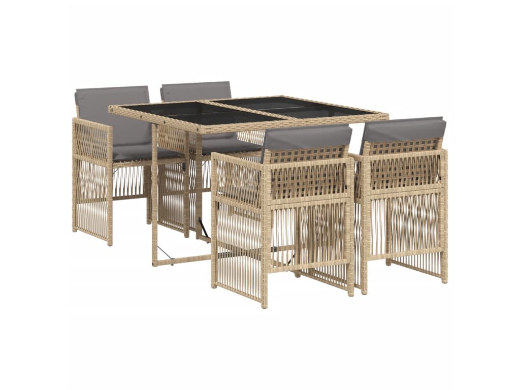 5dílný zahradní jídelní set s poduškami mix béžové polyratan 3210900