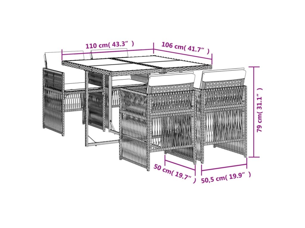 Tento zahradní jídelní set je skvělou volbou pro stolování pod širým nebem nebo jen tak pro odpočívání na zahradě, dvorku či terase.