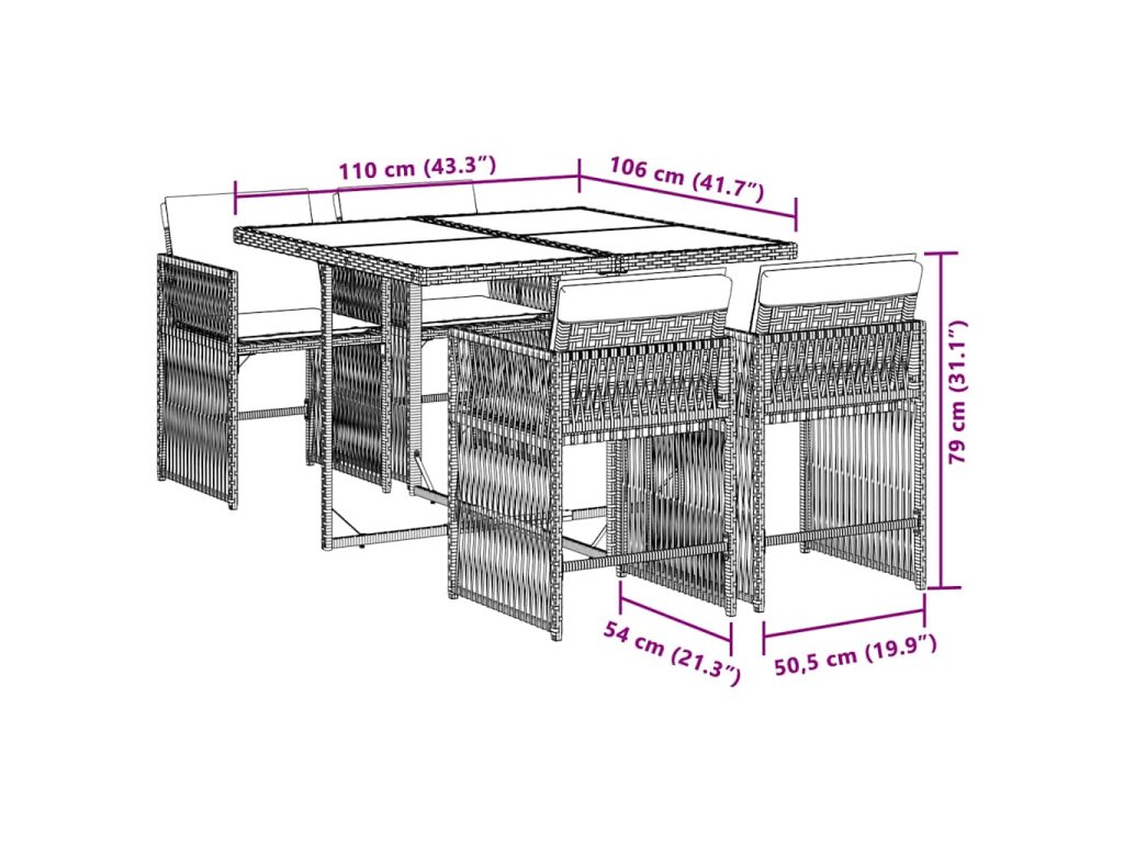 Tento zahradní jídelní set je skvělou volbou pro stolování pod širým nebem nebo jen tak pro odpočívání na zahradě, dvorku či terase.