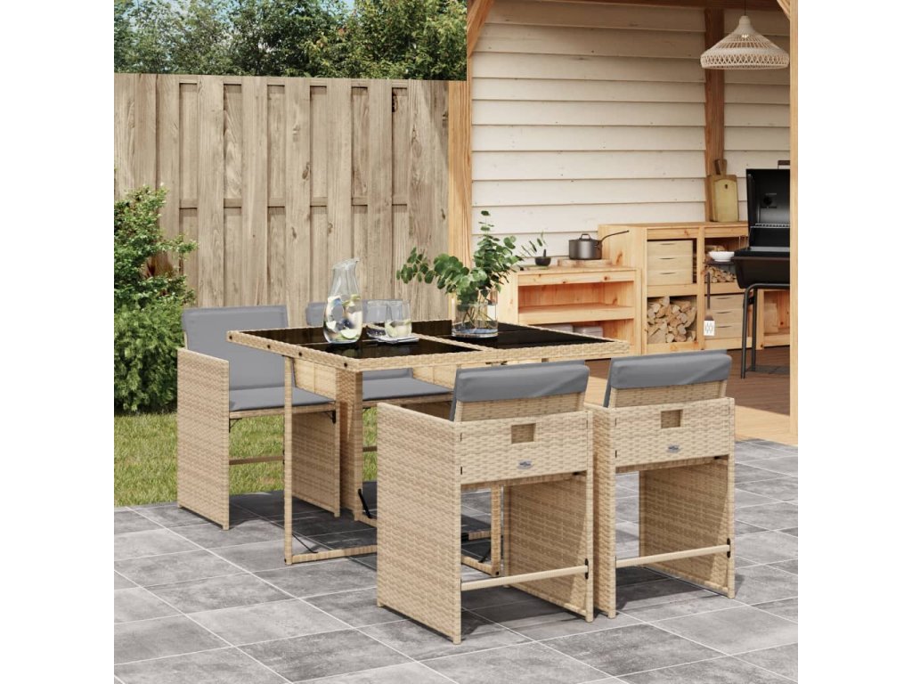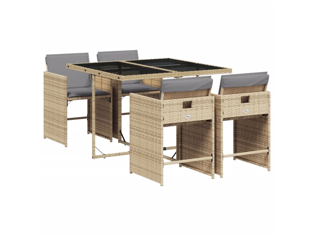 5dílný zahradní jídelní set s poduškami mix béžové polyratan 3277847