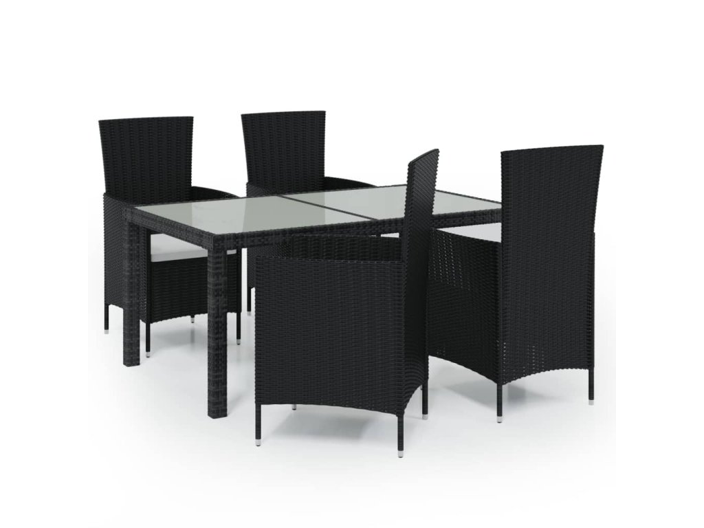 5dílný zahradní jídelní set s poduškami polyratan černý 3094827