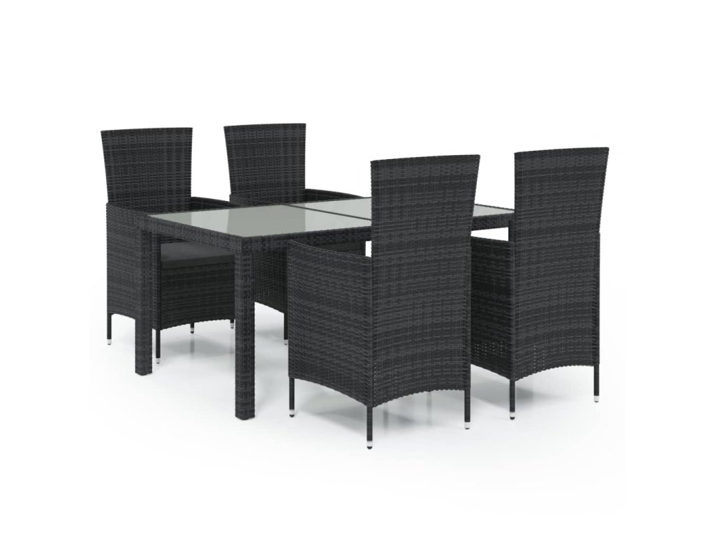 5dílný zahradní jídelní set s poduškami polyratan černý 3094867