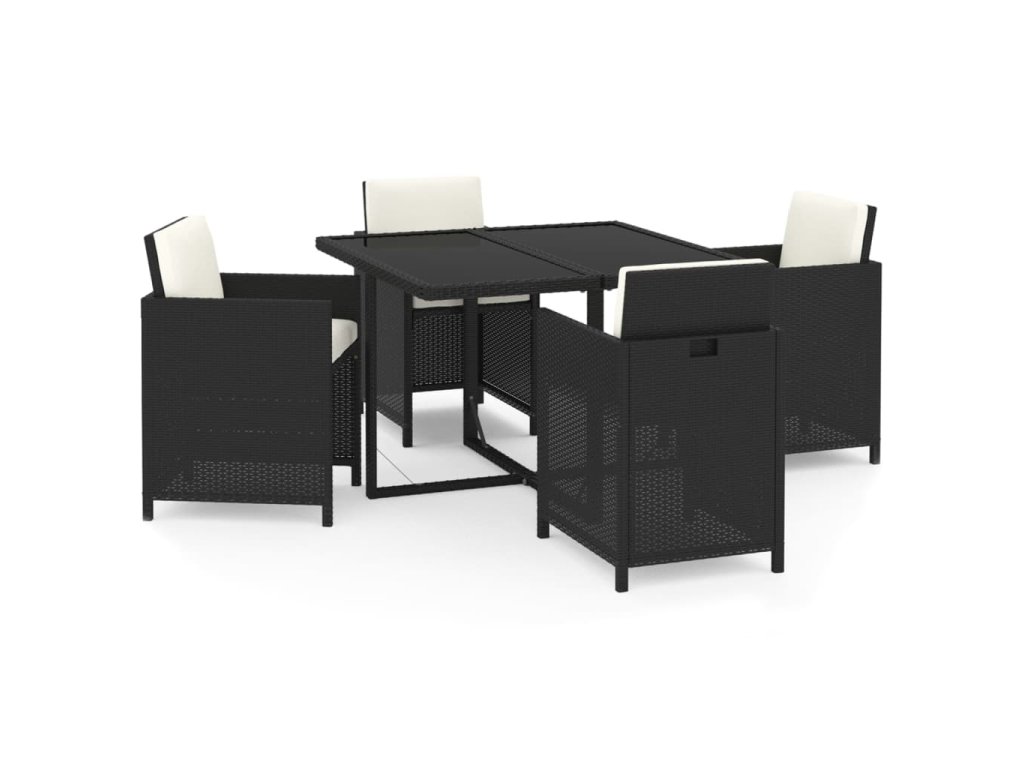 5dílný zahradní jídelní set s poduškami polyratan černý 3095503