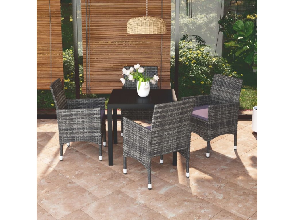 5dílný zahradní jídelní set s poduškami polyratan šedý 3095022