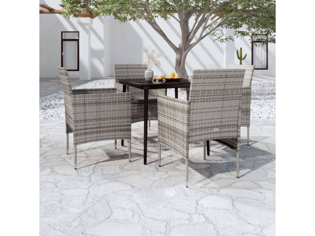 5dílný zahradní jídelní set s poduškami šedý a černý 3099312