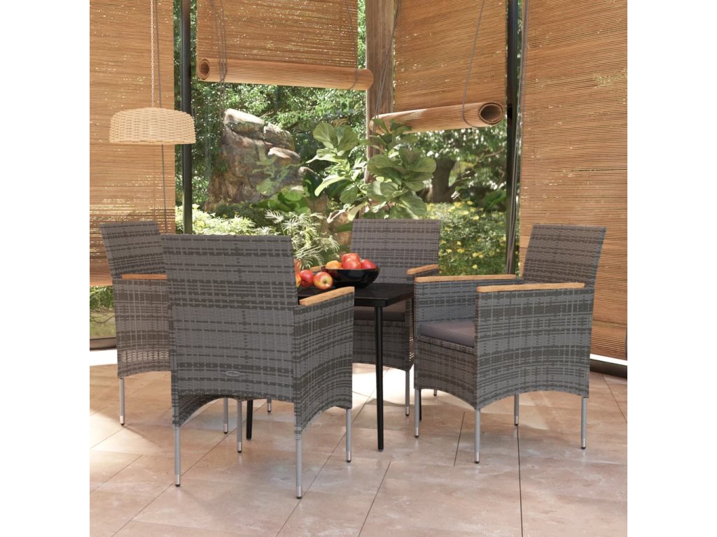 5dílný zahradní jídelní set s poduškami šedý a černý 3099348