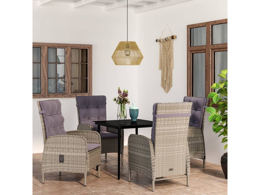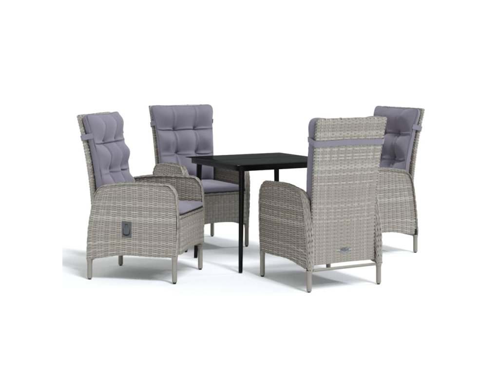 5dílný zahradní jídelní set s poduškami šedý a černý 3099372
