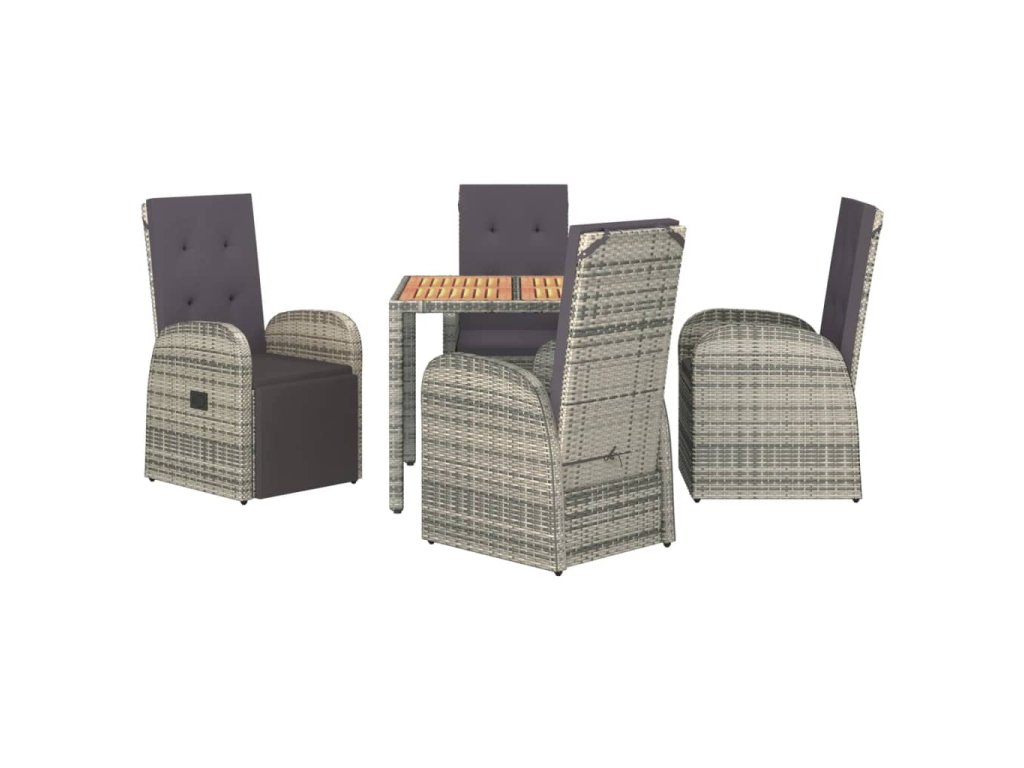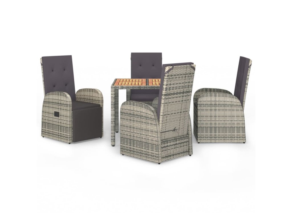 5dílný zahradní jídelní set s poduškami šedý polyratan 3157584