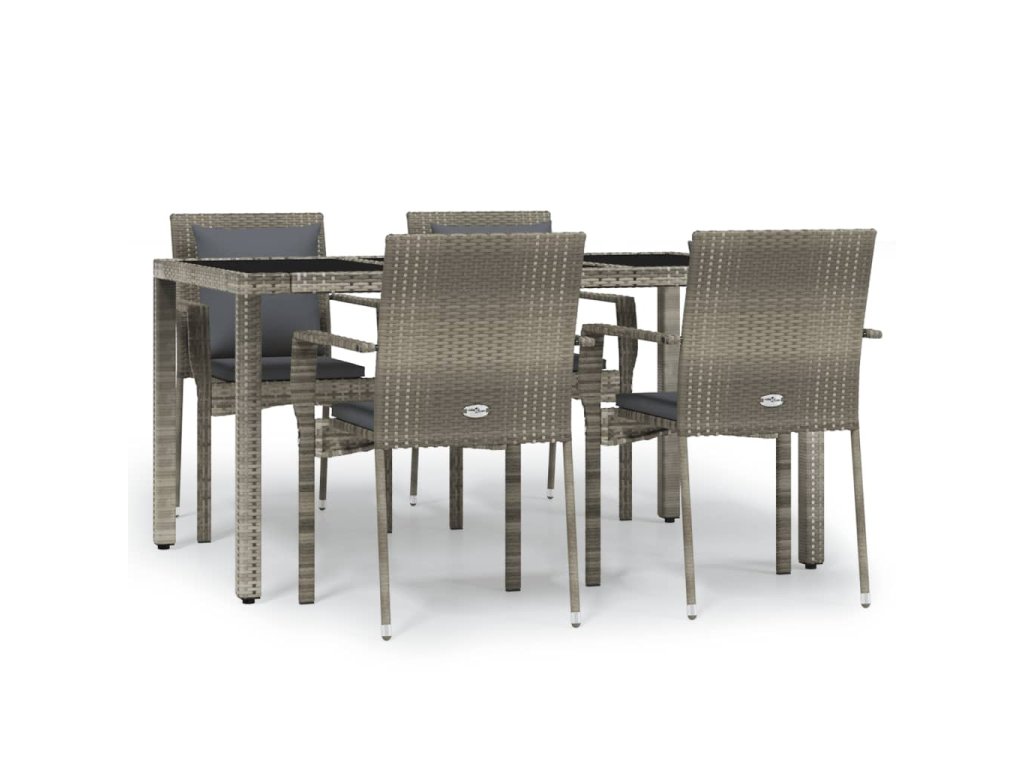 5dílný zahradní jídelní set s poduškami šedý polyratan 3157959