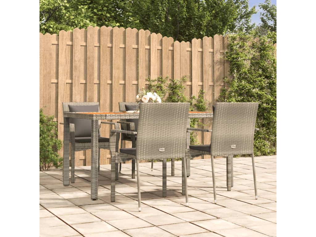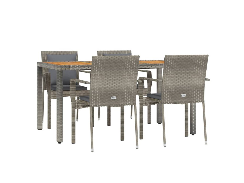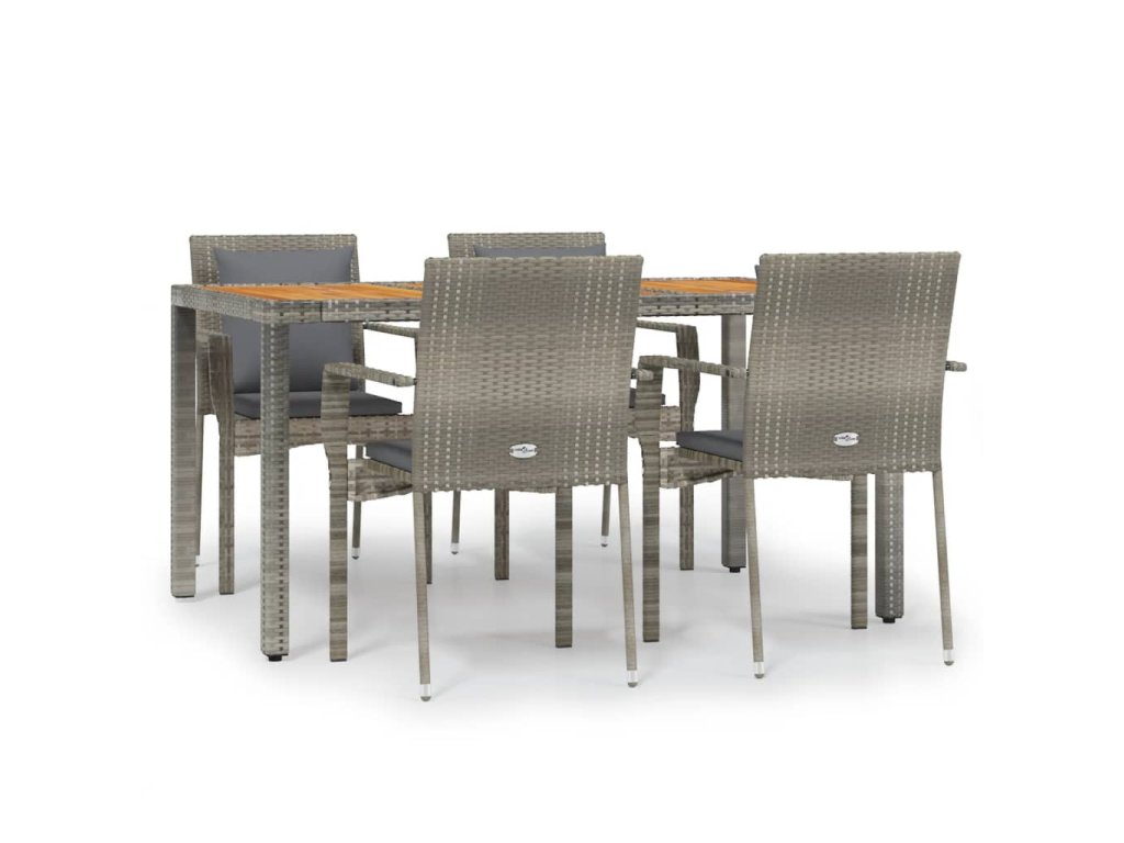 5dílný zahradní jídelní set s poduškami šedý polyratan 3184971