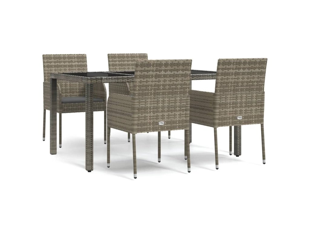5dílný zahradní jídelní set s poduškami šedý polyratan 3185007