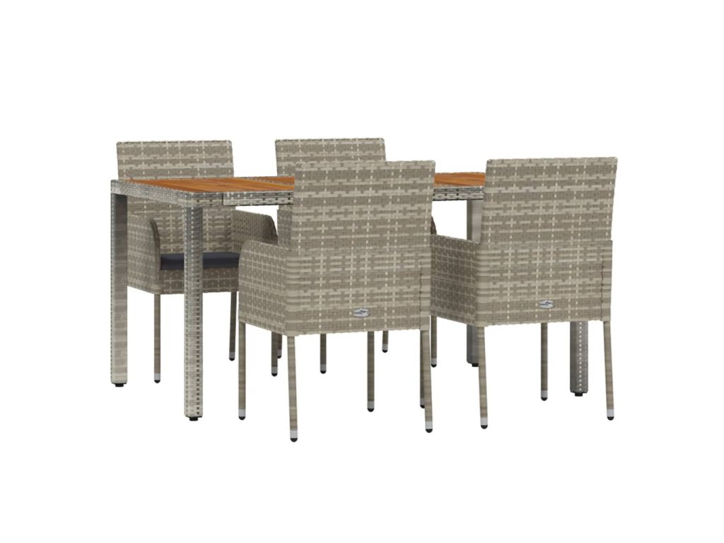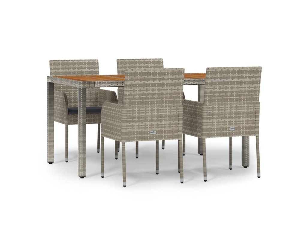 5dílný zahradní jídelní set s poduškami šedý polyratan 3185019